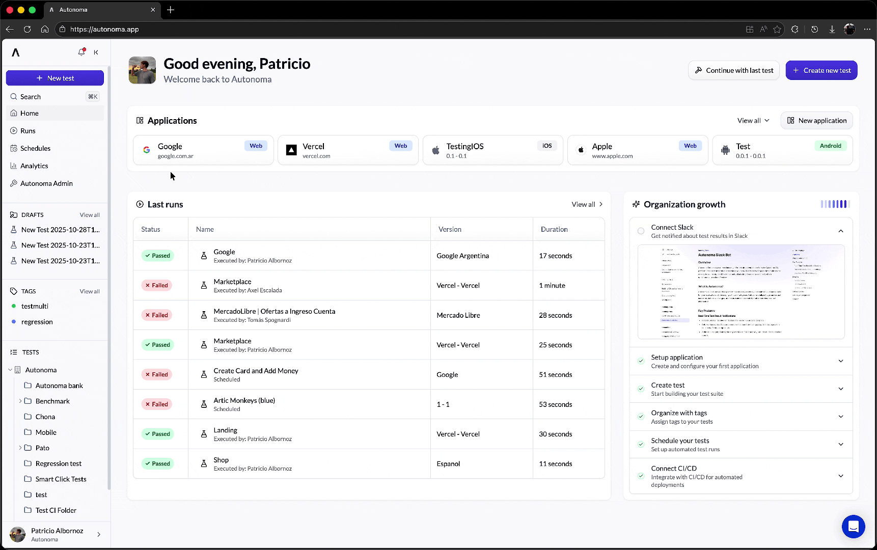 - Autonoma receives the request and runs your tests