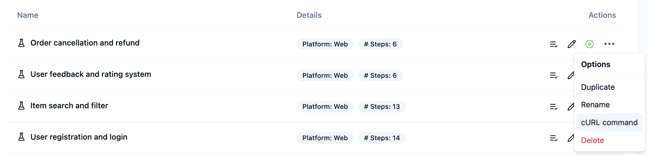 Step 2. Select the tests or folders that you want to run in your CI, copy the generated action job!
